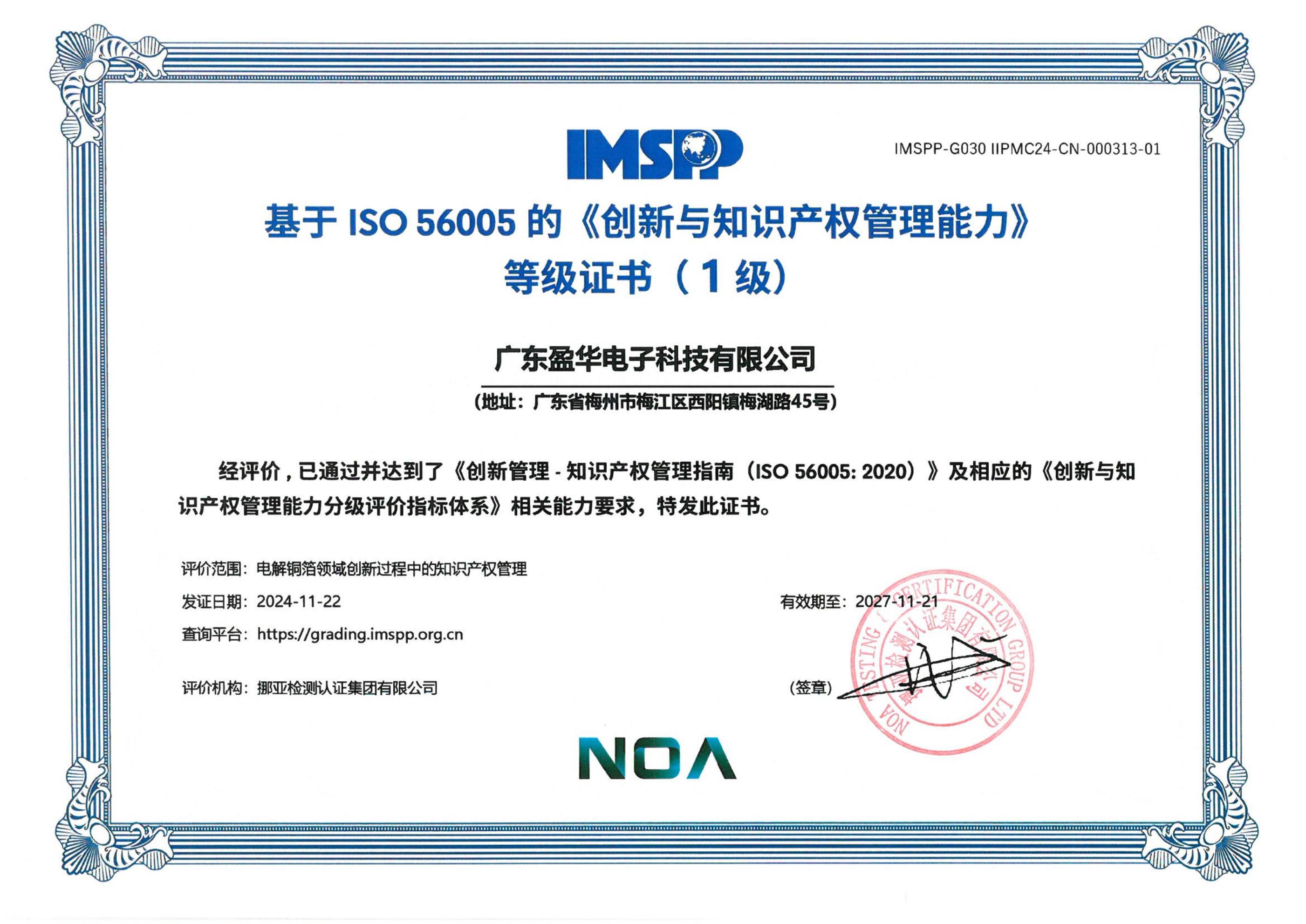 知識產權管理體系認證證書