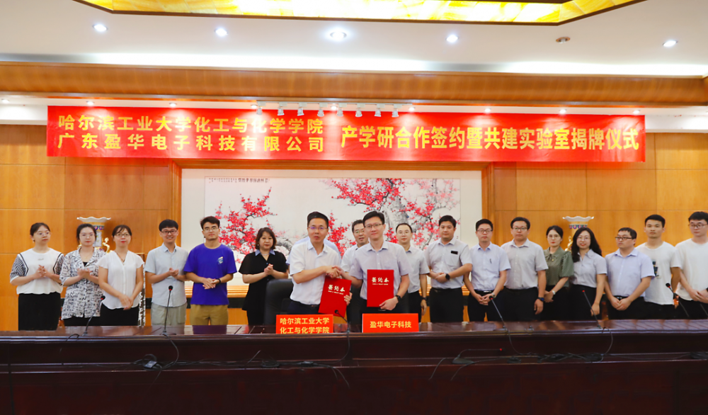2022年8月17日,廣東盈華電子科技有限公司與哈爾濱工業大學化工與化學學院在梅州簽署產學研合作協議,雙方就高性能電解銅箔制造復合添加劑的研發和產業化展開合作,建立互相支持、互相依托、共同發展的產學研合作關系,并舉行高性能銅箔聯合實驗室揭牌儀式。哈爾濱工業大學化工與化學學院副院長杜春雨教授,化工與化學學院安茂忠教授,盈華科技總經理李遠泰等領導出席簽約、揭牌儀式。