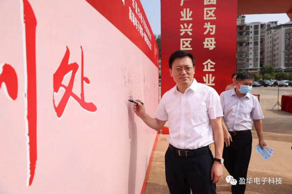 梅州市委常委、副市長(zhǎng)、梅江區(qū)委書記陳金鑾代表市委市政府致辭,向廣東盈華電子科技項(xiàng)目動(dòng)工表示熱烈的祝賀,要求市、區(qū)各級(jí)各部門樹立“產(chǎn)業(yè)興市、制造強(qiáng)市”的鮮明向?qū)В瑸橹圃鞓I(yè)擔(dān)當(dāng),不斷增強(qiáng)梅州蘇區(qū)振興發(fā)展的內(nèi)生動(dòng)力,積極打造懂企業(yè)的政府,主動(dòng)對(duì)接項(xiàng)目和企業(yè),發(fā)揚(yáng)“馬上就辦,真抓實(shí)干”的作風(fēng),積極協(xié)調(diào)解決項(xiàng)目過(guò)程中遇到的難點(diǎn)堵點(diǎn),推動(dòng)項(xiàng)目早日建設(shè)、早投產(chǎn)、早達(dá)效。希望廣東盈華電子科技公司堅(jiān)定發(fā)展信心,集中骨干力量,高標(biāo)準(zhǔn)、高質(zhì)量、高效率完成項(xiàng)目建設(shè),努力將項(xiàng)目打造成“節(jié)能工廠、清潔工廠、智慧工廠及創(chuàng)新工廠”的典范,實(shí)現(xiàn)多方互利共贏的局面。
