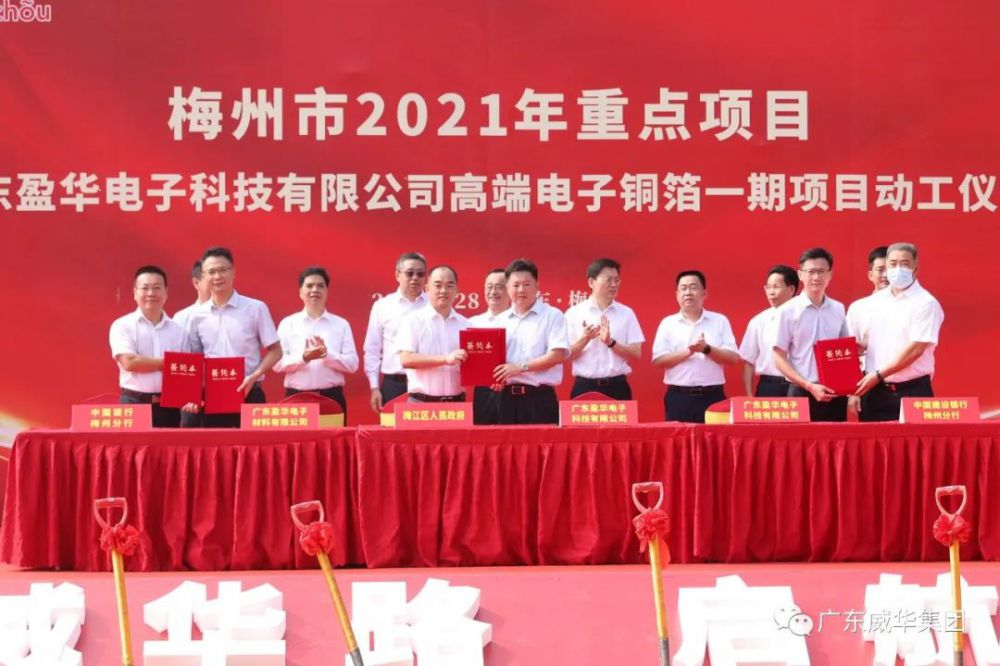 中國(guó)建設(shè)銀行廣東省分行副行長(zhǎng)馬俊先生在致辭中表示,廣東威華集團(tuán)是從梅州走出來(lái)的優(yōu)秀民營(yíng)企業(yè)代表,雙方真誠(chéng)合作已達(dá)29年,建立了深厚的情誼。今后,建設(shè)銀行將大力支持廣東盈華電子科技高端電子銅箔項(xiàng)目建設(shè),一如既往地支持梅州地方經(jīng)濟(jì)建設(shè),進(jìn)一步深化銀企合作關(guān)系,共同促進(jìn)梅州市順利實(shí)現(xiàn)“十四五”預(yù)期目標(biāo)。