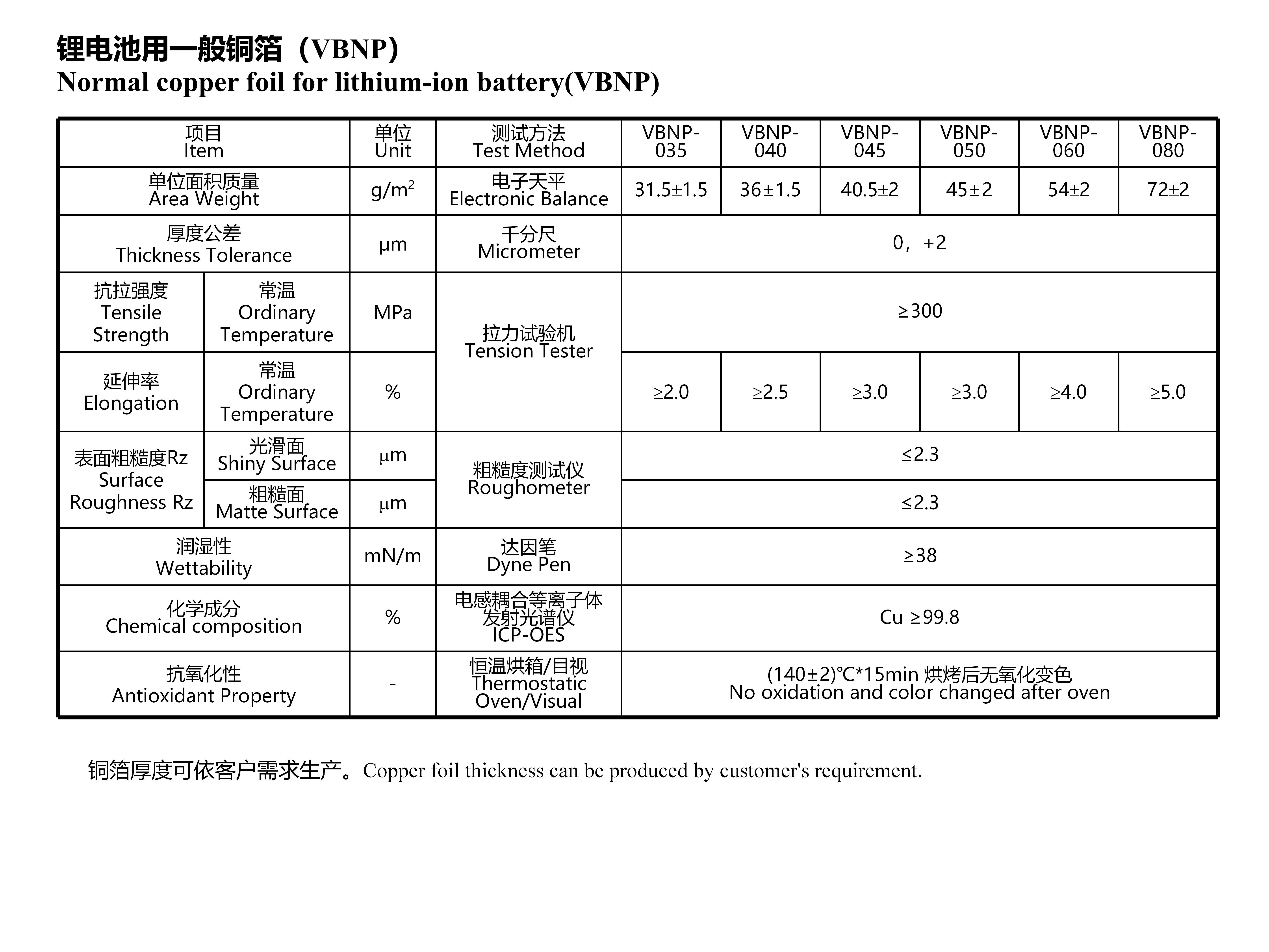 鋰電池用一般銅箔(VBNP)