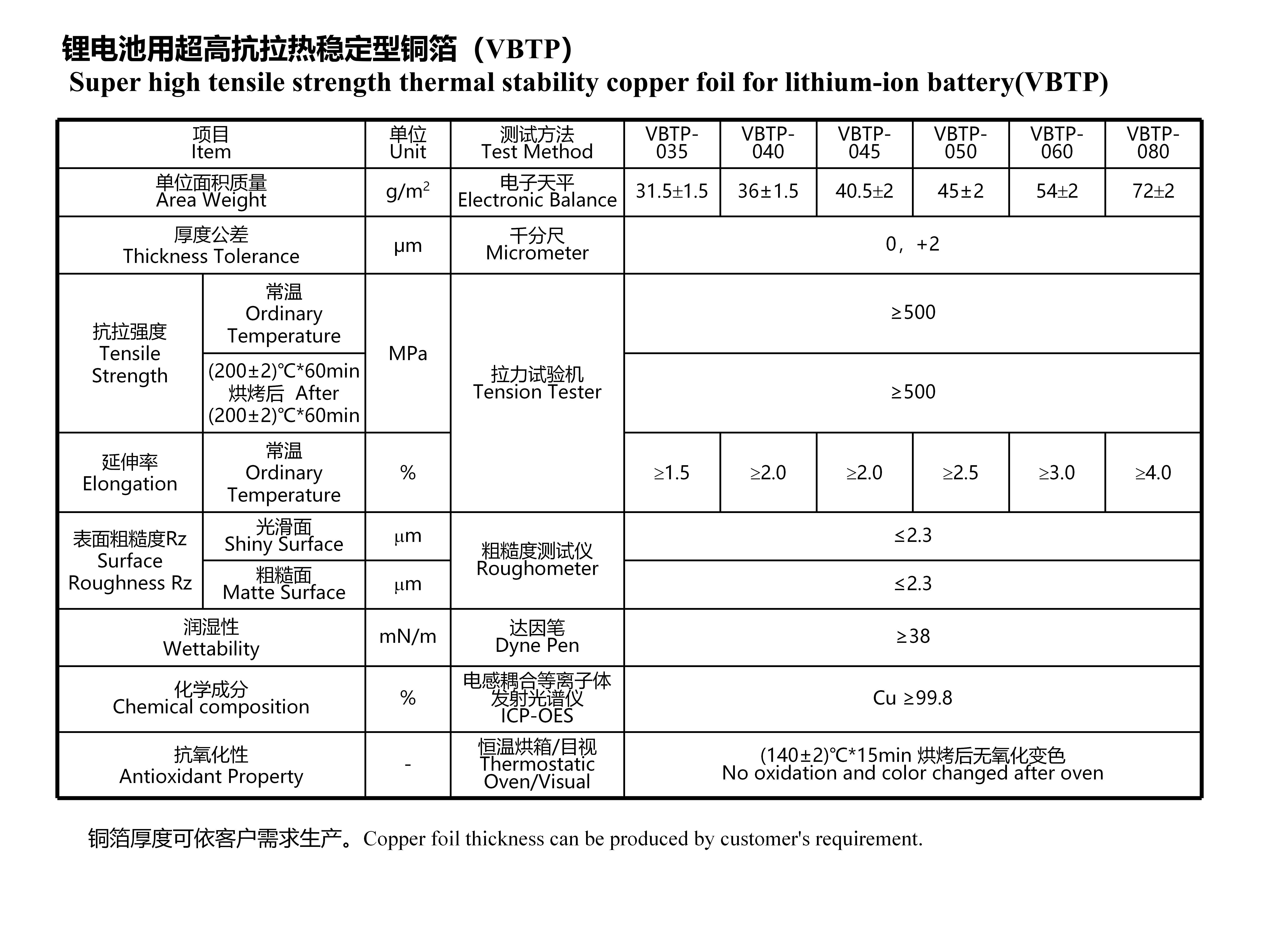 鋰電池用超高抗拉熱穩定型銅箔(VBTP)
